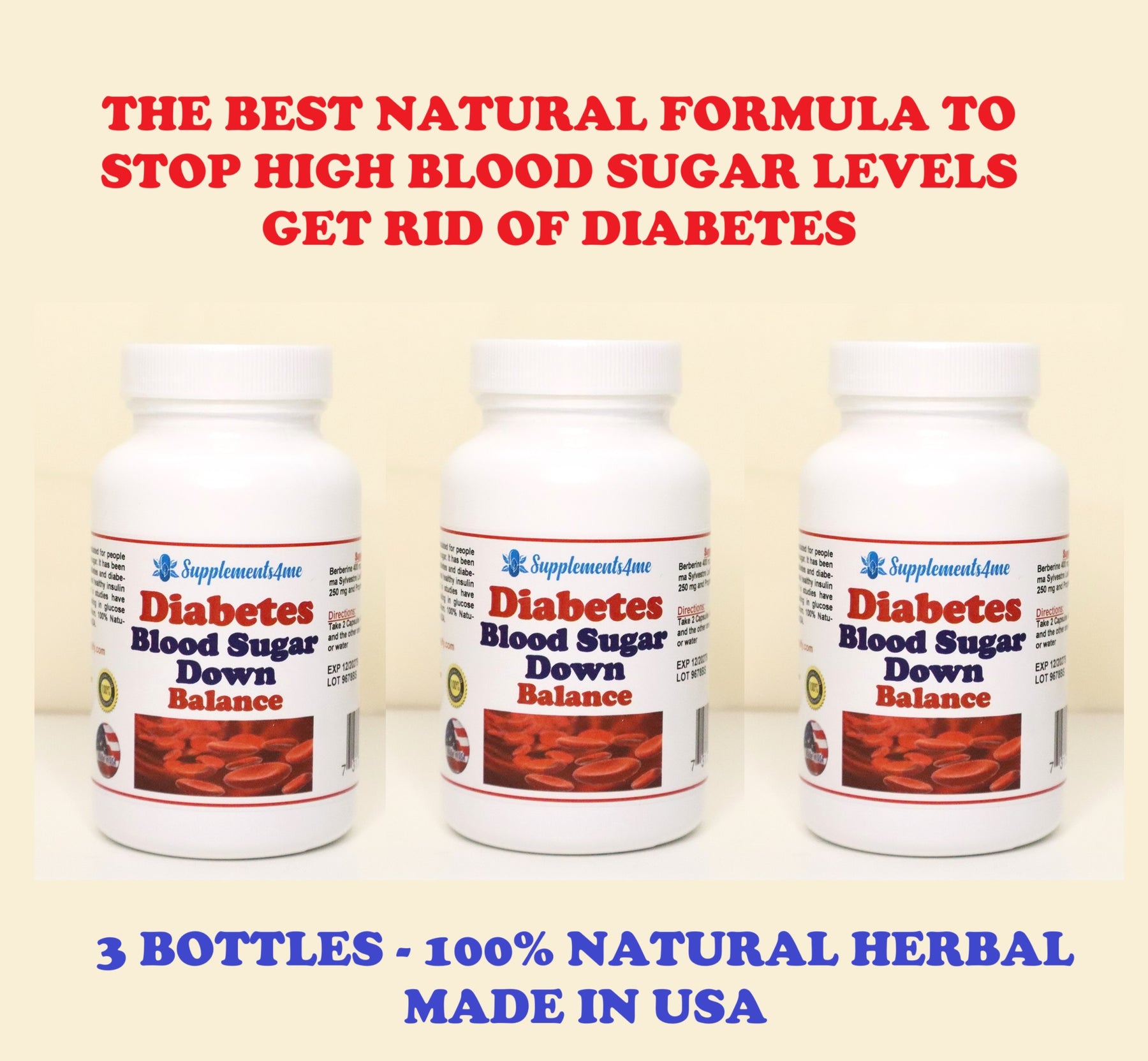 GET RID OF DIABETES NATURALLY - LOWER THE HIGH BLOOD SUGAR - TEAT & PREVENT - 3 BOTTLES - MADE IN USA