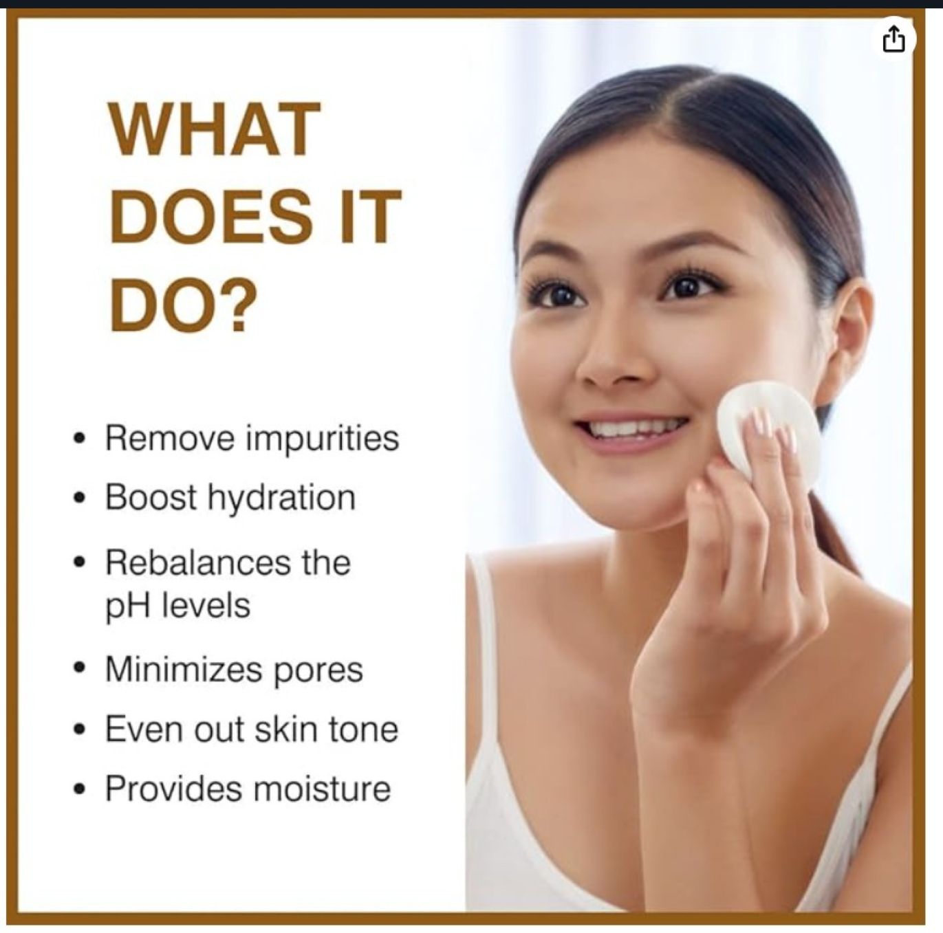 This face toner helps to remove excess dirt, traces of oil and makeup, correct and balance the pH of your skin, and helps control acne. ... By helping to clean and close pores, it's especially beneficial for acne-prone skin. Cleanse your skin with a moisturizing and natural remedy when you use this toner. Ideal for sensitive skin, this product will protect your skin and leave it feeling refreshed after each use, while also tightening pores for a clean look.