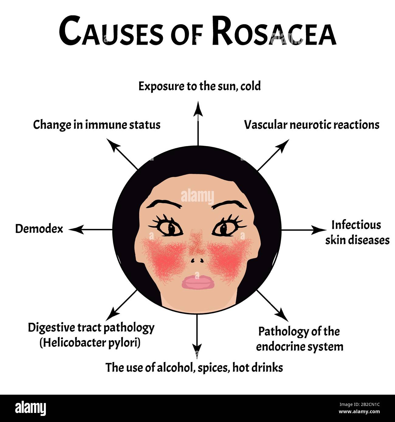 Lifestyle Factors: Stress, alcohol, and spicy foods may also contribute to rosacea.