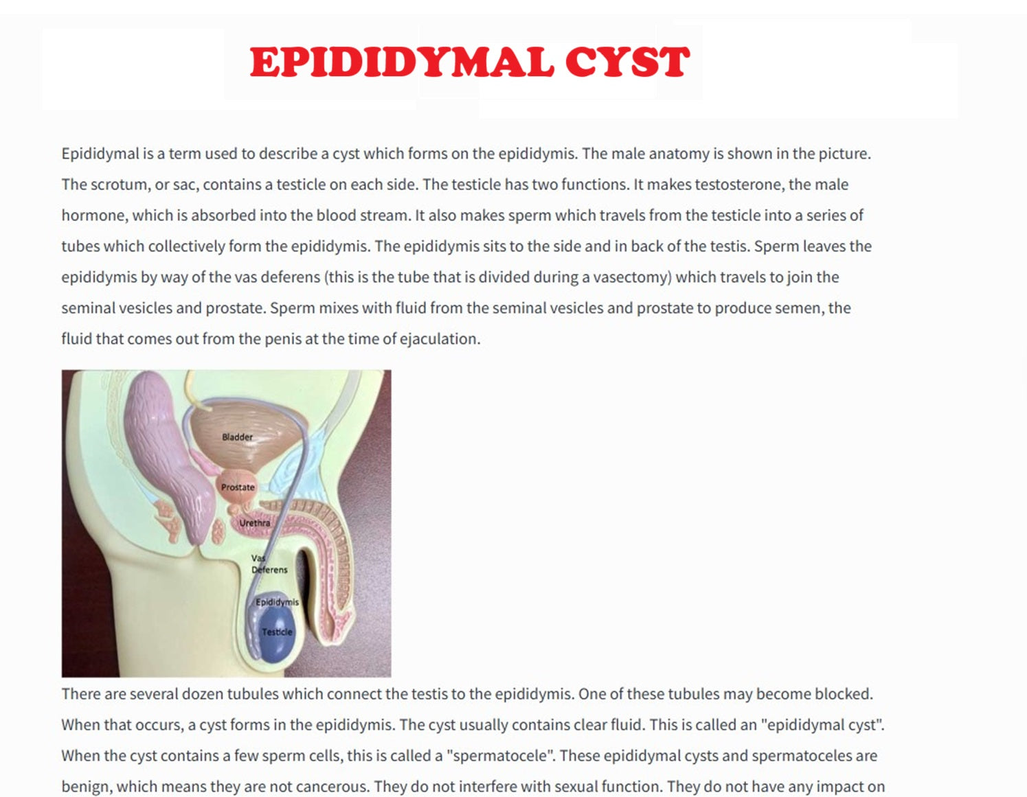 This product has been formulated for people who suffer from Testicular Cyst. This supplement will shrink and remove any cyst. Cysts are common and can occur anywhere in the body in people of any age. Sometimes they may be felt as an abnormal or new lump or bump. Cysts usually are filled with air or other gases, liquids such as pus. #pancreaticcyst .Besides that it will treat your pain. 100% Natural. No side effects.