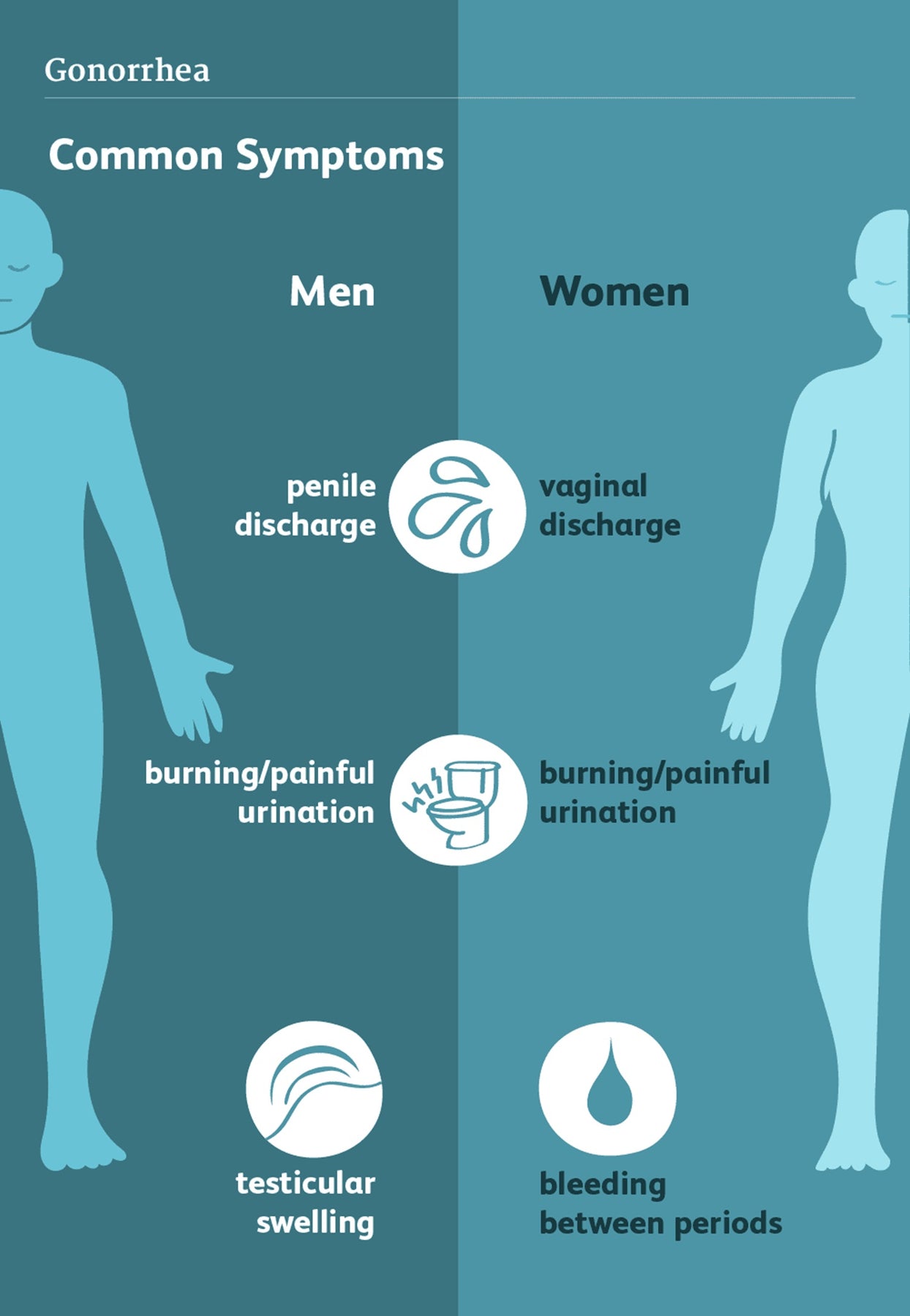 Gonorrhea infection is often mistaken for common vaginal yeast or bacterial infections. Symptoms include: discharge from the vagina, pain or burning sensation while urinating, the need to urinate more frequently, sore throat, pain upon engaging in sexual intercourse, sharp pain in the lower abdomen and fever. Untreated infection with gonorrhea may also result in the infection spreading to the bloodstream. In this case, rash, fever, or pain in the joints may eventually develop.